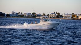 Siamo così abituati ad avere lo specchio di poppa ingombrato dai grandi fuoribordo, che ci abbiamo ormai rinunciato. Siamo così rassegnati all’omologazione, che abbiamo dimenticato la prime due prerogative di un fisherman: . pozzetto libero;. specchio di poppa sgombro. Sarà che ho ancora la libreria intasata da vecchie riviste nautiche americane, sarà che ogni tanto penso a ciò che i banner pubblicitari e i test in mare non ci fanno più vedere, ma sono arrivato addirittura ad accettare che un center console di 30 piedi sia monomotore. Non devo peraltro lavorare su me stesso per accettare il piede poppiero, giacché a più riprese mi sono pronunciato favorevolmente, in determinati tipi di impiego, a questo tipo di trasmissione (link qui e qui). Il Southport 30 FE DPI è tutto questo: un center console, di trenta piedi di lunghezza, alimentato da un motore TD Volvo Penta da 440cv, accoppiato ad un piede DPI. Pozzetto comodo, specchio di poppa pulito, plancetta poppiera comoda sia per imbarcare grosse prede, che per far trasbordo di persone ed equipaggiamenti da e per il pontile, coppia in abbondanza (quasi 120kgm di picco massimo). Sul fronte delle prestazioni, la velocità di crociera si attesta sui 25 nodi a 2800 giri/min, con una percorrenza di 2.5 mpg, il che garantisce una autonomia di oltre 350 miglia con il 90% di capacità del serbatoio di gasolio di 160 galloni. La velocità di punta è di poco più di 40 nodi, il che non è affatto male, considerando le 5 tonnellate suonate, in ordine di navigazione, di questo Southport di molta sostanza. D’accordo, in manovra nello stretto potrà anche sembrare meno pratica di un bimotore fuoribordo, ma la casa fornisce la barca già nell’equipaggiamento di serie l’elica di prua integrata con la propulsione del piede tramite joystick, per cui questa barca…