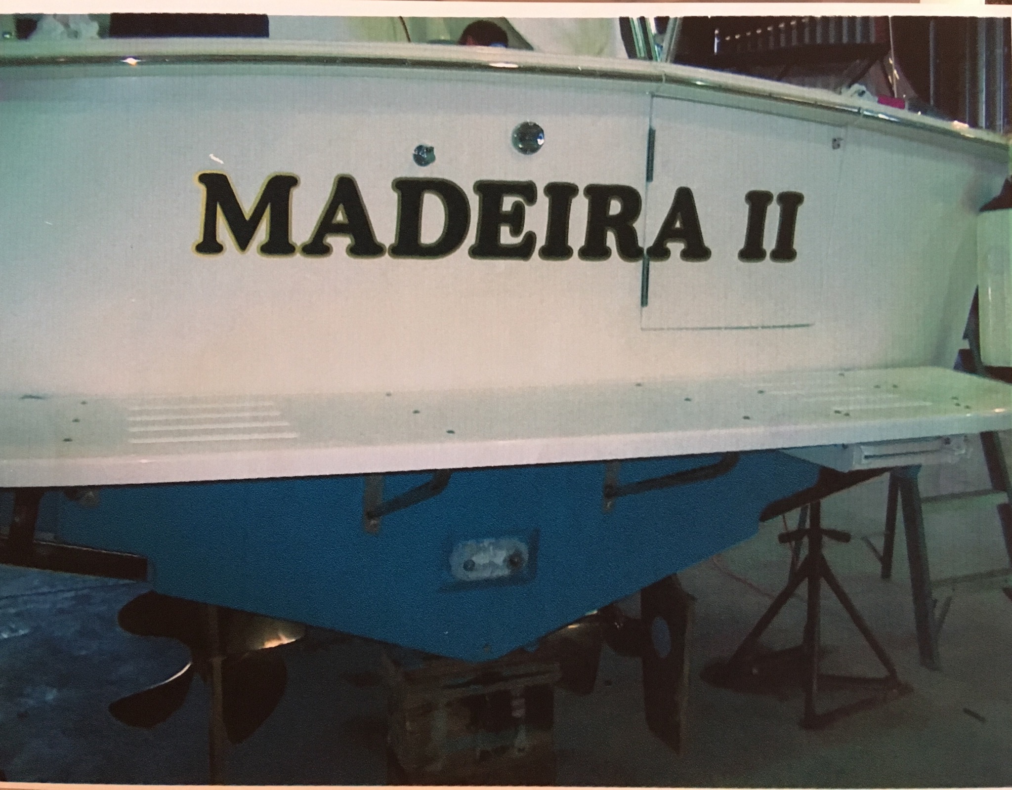 Dopo altre quattro settimane mi arrivavano le prime foto della barca assemblata, con in bella mostra la scritta verde/oro “MADEIRA II”: