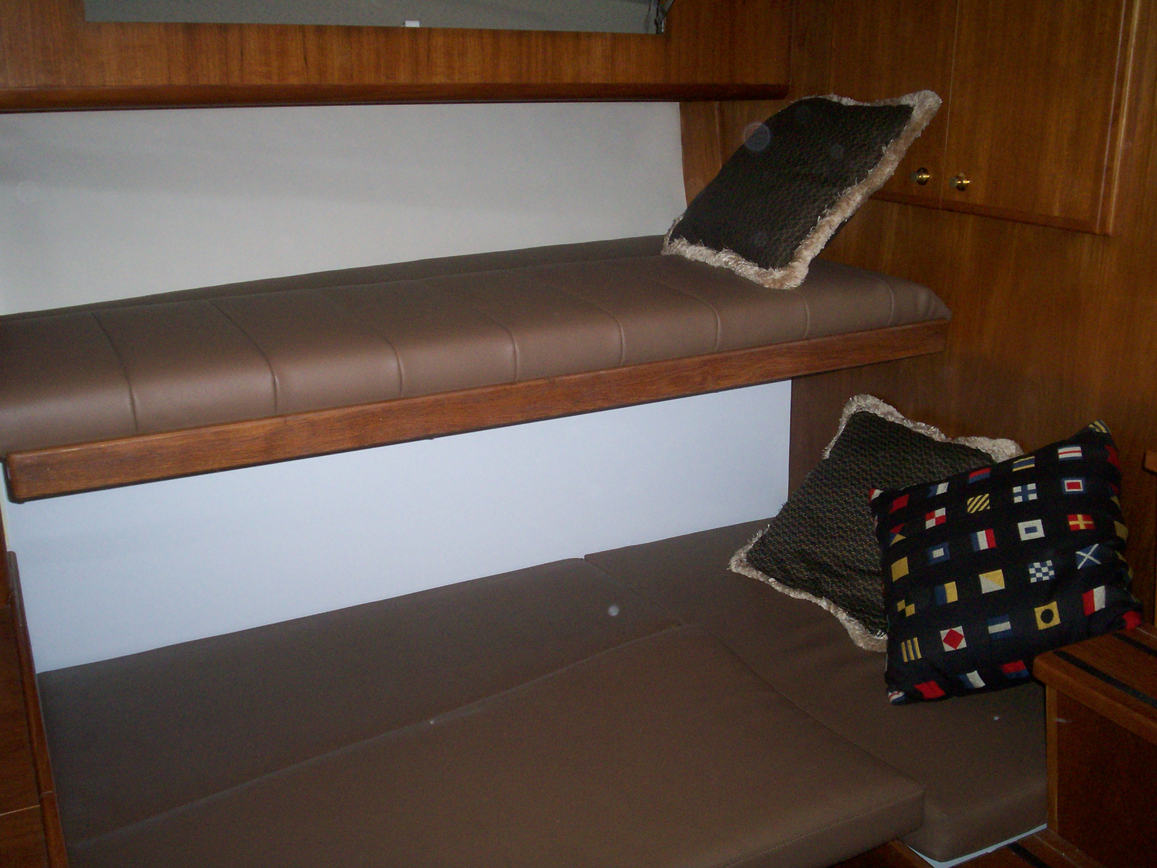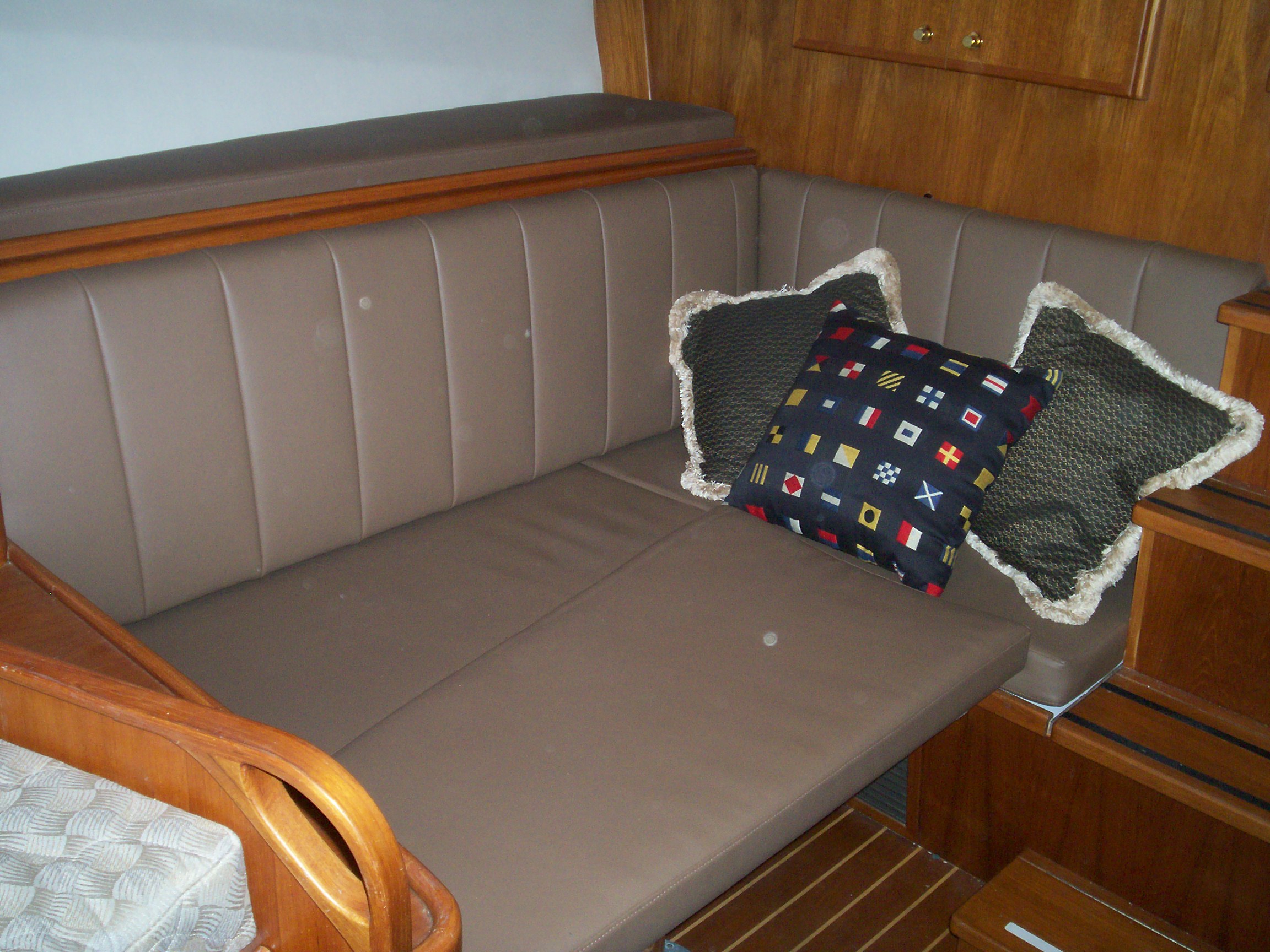 La modifica prevista alla dinette sarebbe poi diventata così: cuccetta alla francese sotto, con una aggiuntiva per un ragazzo sollevando lo schienale del divano.
