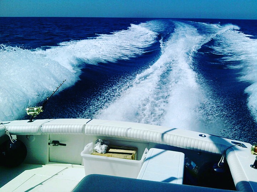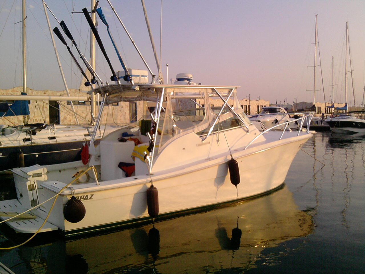 La barca prendeva forma settimana dopo settimana, campione dopo campione, sia per la scelta della scritta sullo specchio di poppa che per le tappezzerie interne, fino a che sarebbero passati i sei mesi previsti per la partenza da Berlin, in New Jersey, alla volta di Livorno. Ci fu un ritardo di circa due settimane che porto la consegna al 3 luglio del 2004. Il ritardo fu imputato alla plancetta di poppa, aggiunta in corso d’opera su insistenza di mio padre, anche se avrei amato lo specchio dritto con due gradini sfalsati, come sui fisherman “estremi” d’oltreoceano. ma per venire incontro ad esigenze di comfort e cortesia nei confronti delle signore, mi portai a ragione e mi convinsi. Dopotutto, la plancetta così come fu disegnata dalla Topaz non era così invasiva ed ampia da provocare inestetismi od ostacolare l’azione di pesca, quindi poco male.