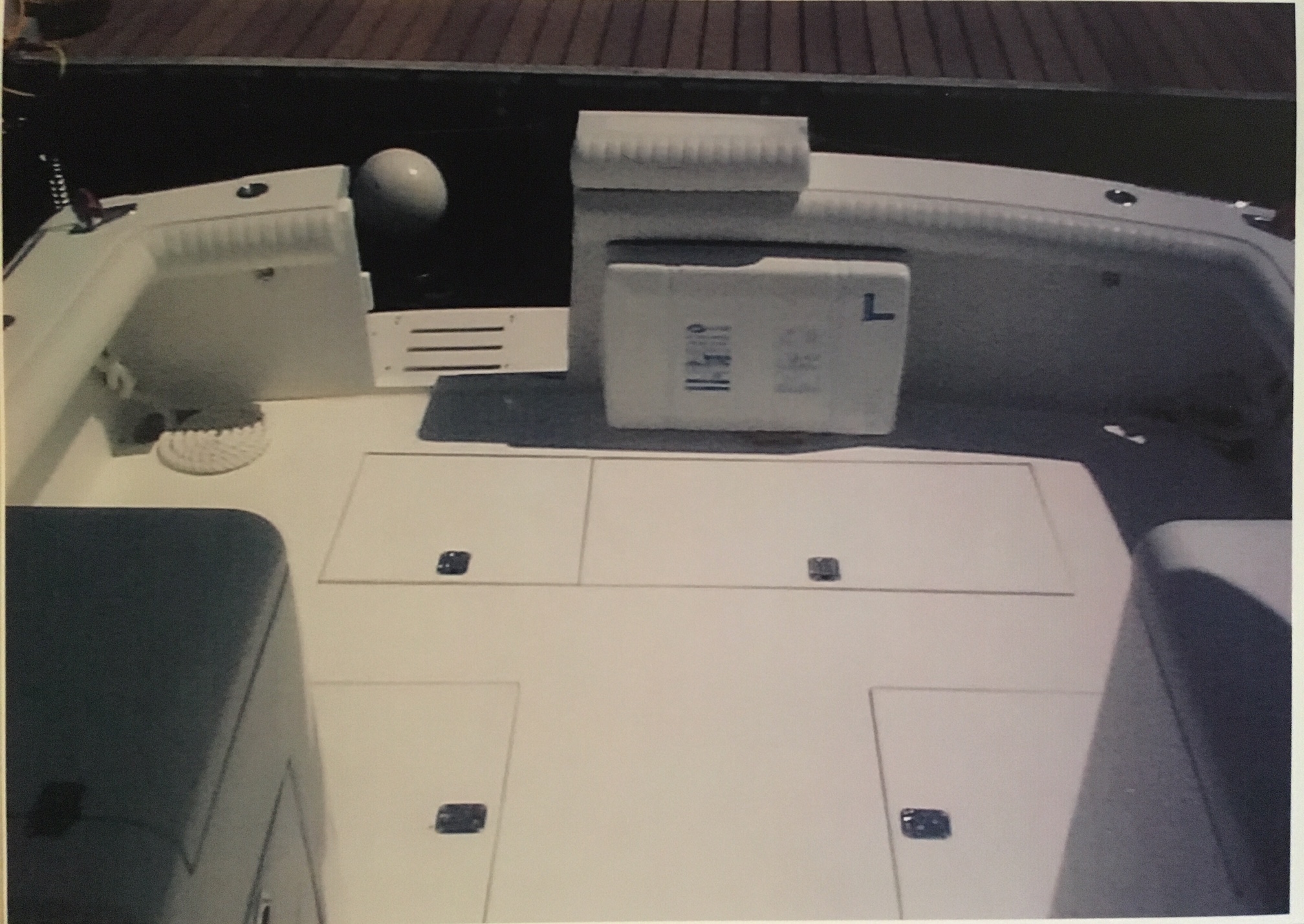 Le falchette larghissime, i trincarini bassi sull’acqua al giardinetto, bombati per rialzarli verso il centro dello specchio di poppa, erano studiati per agevolare il tag o la raffiatura delle prede e per offrire il punto di appoggio migliore alle cosce dell’angler in combattimento. I cockpit bolsters erano super imbottiti, quasi “ciccioni” e trapuntati come i divani in cuoio in stile chester! Sugli angoli dei trincarini c’erano anche le liste paracima per l’ancoraggio alla francese… Questi americani erano proprio una spanna sopra, non c’è che dire.