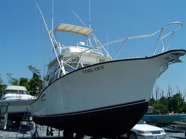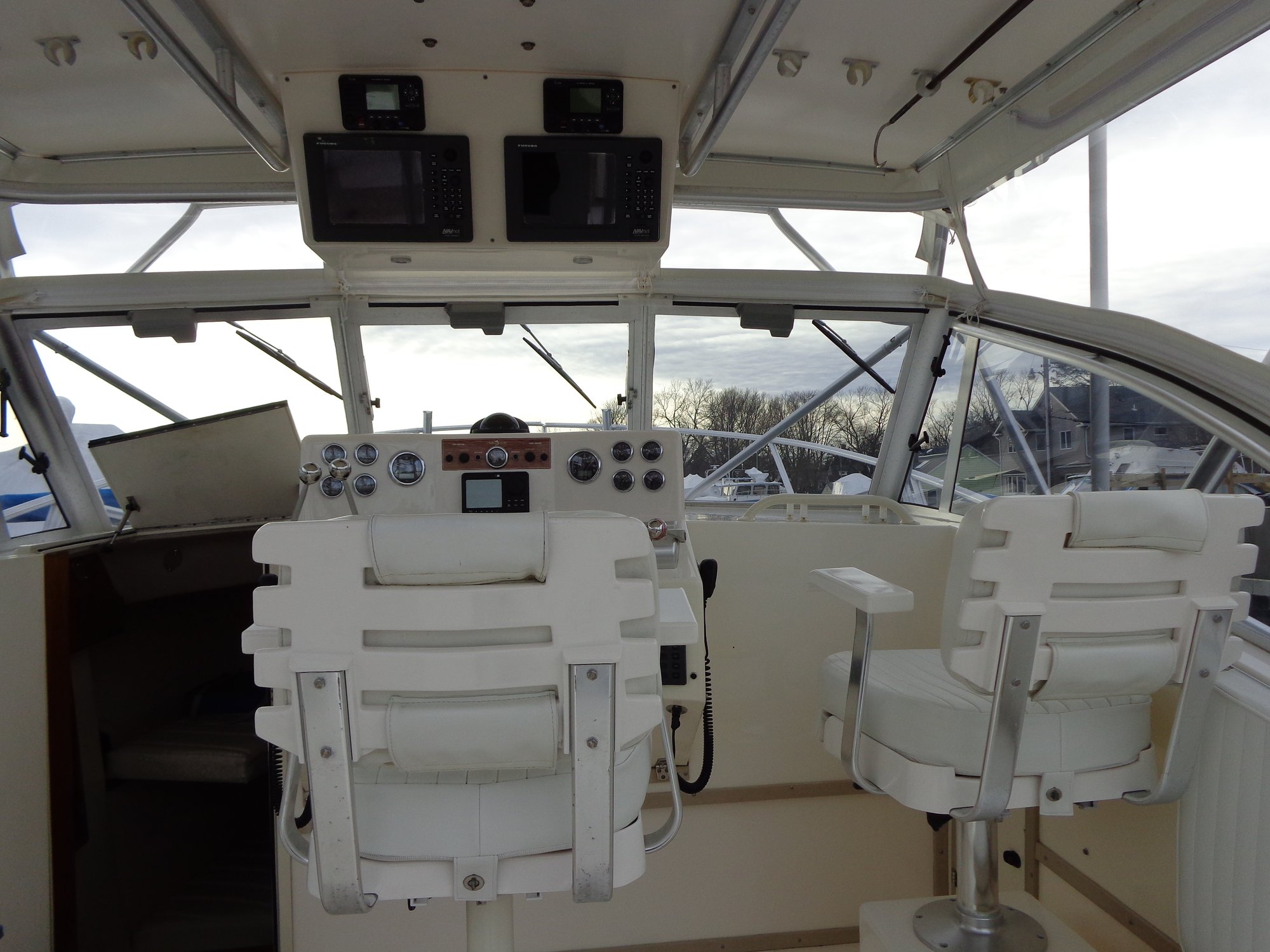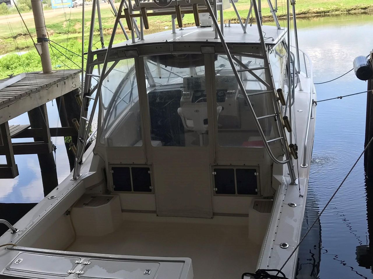 La poppa di questo express fisherman è quasi perfettamente scevra da sporgenze, al di là degli ombrinali di scarico dei motori. Anche i flaps sono incassati a filo del dritto di poppa, a scanso di pericoli per le lenze in tensione durante i combattimenti. Questa caratteristica è una esigenza poiché gran parte dei pescasportivi americani detesta la plancetta di poppa, per cui una superficie poppiera perfettamente liscia è utile e più sicura per portare al raffio/tag la preda.