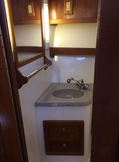 Riguardo l’areazione della cabina, oltre al passo d’uomo sopra menzionato vi è un altro oblò apribile ricavato nella tuga, asservito al locale bagno separato.