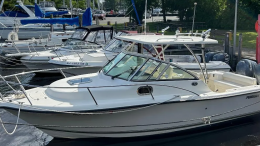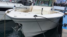 Prodotto tra il 1998 e il 2000, il Boston Whaler 26 Outrage rappresenta uno dei modelli più apprezzati della celebre linea Outrage, nota per l’eccezionale combinazione di prestazioni offshore, sicurezza e praticità. Concepita per soddisfare pescatori sportivi e appassionati di crociere costiere, questa imbarcazione da 26 piedi si distingue ancora oggi per la sua affidabilità e costruzione di qualità. Ma non pensiamo che sia una barca che strizzi l’occhio solo al pescatore incallito: la strategica disposizione di elementi di sicurezza, di comfort e di sedute rendono il Boston Whaler 26 Outrage ideale anche per la famiglia avvezza ad un uso promiscuo del mezzo, dalla pesca alla crociera costiera, fino agli sport acquatici ed alle immersioni subacquee. La qualità è anche nella progettazione, che non risente affatto dei quasi trent’anni dal suo lancio: il BW 26 Outrage è un evergreen adatto anche come uso diportistico familiare o addirittura come tender di lusso per yacht importanti. Design e costruzione Il 26 Outrage è costruito con il celebre metodo UniBond di Boston Whaler: lo scafo a doppia parete riempito di schiuma a cellula chiusa garantisce galleggiabilità anche in caso di gravi danni strutturali. Il layout è tipicamente center console, con una coperta libera e spaziosa progettata per facilitare sia la pesca che la mobilità a bordo. Le linee dello scafo sono pulite, con una prua pronunciata che consente di affrontare mari mossi in sicurezza. Razionalità ed ergonomia regnano in plancia: due superfici, una delle quali protetta da palpebra con chiusura, sono destinate all’elettronica di ausilio alla navigazione; tientibene e tubolari T-Top a portata di mano, in plancia ed attorno ad essa, per una navigazione sicura anche con il mare mosso. Prestazioni e motorizzazione La barca era originariamente disponibile con motorizzazioni fuoribordo gemellate, solitamente da 200 a 225 HP ciascuno, per una potenza complessiva…
