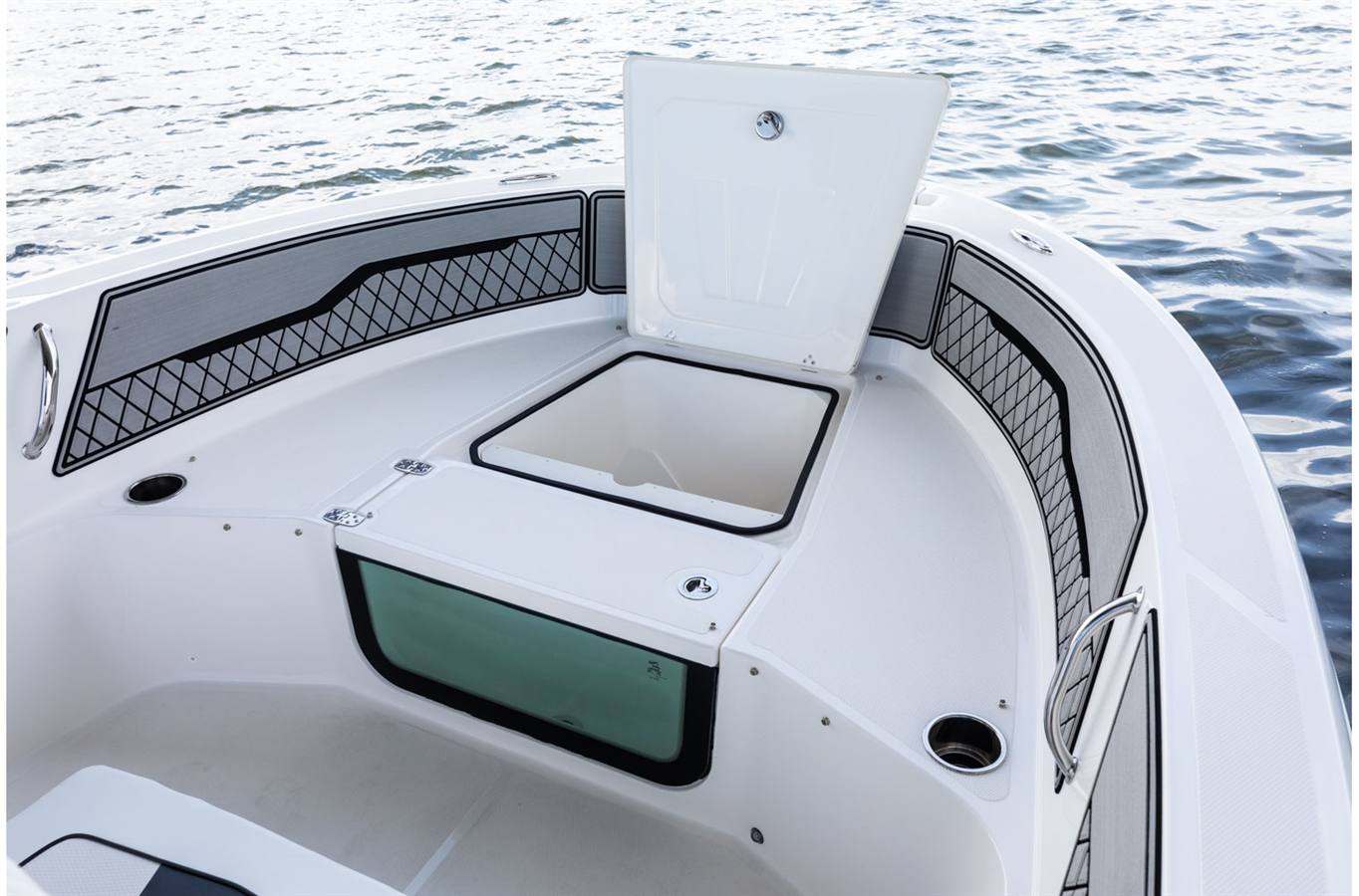 Il bordo libero risulta a prima vista alto, ma l’effetto è dovuto al design in stile “rocket”, tipico degli Scarab di casa Wellcraft e mutuato anche dai suoi center console più piccoli. In realtà l’altezza dal pelo dell’acqua è di 73cm, ideale per raggiungere con facilità il mare con la punta delle dita dal pozzetto e per salpare o taggare le prede. (dettagli su questo requisito fondamentale di un fisherman “perfetto” sono reperibili sul nuovo eBook)
