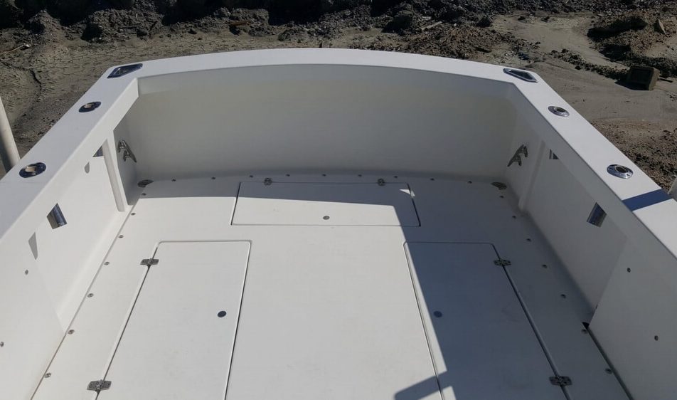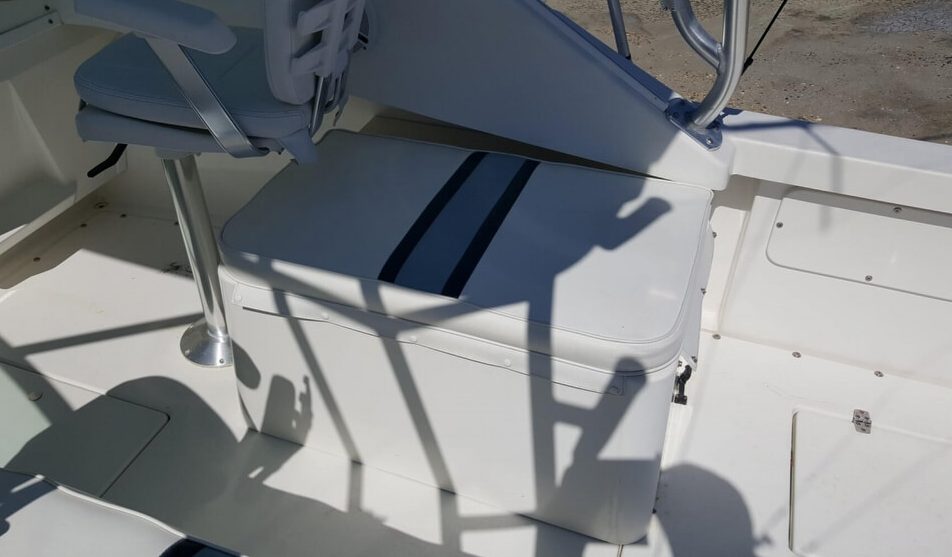 Una particolarità (costosa) del Bimini 245 SX è la rifinitura interna dello scafo in gelcoat, esattamente come l’esterno. Dettaglio non affatto scontato, nemmeno a bordo di fisherman molto blasonati e più grandi.