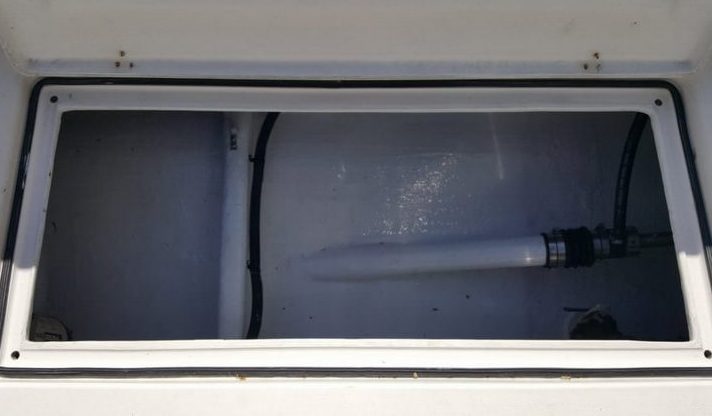 Anche questo è un metodo progettuale e costruttivo mutuato da Topaz Yachts, che consiste nel convogliare le acque di coperta verso due soli ombrinali di scarico sovradimensionati, posizionati simmetricamente ai lati degli scarichi dei motori.