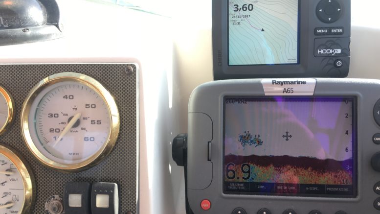 Acqua verdognola, brezza da NW e aria soleggiata, filiamo due lenze molto lunghe, con due Barra Magnum da 13cm (artificiali a torto pensionati dalla Rapala ormai da un paio d’anni ma egregiamente rimpiazzati dagli X-Rap), rivelatisi micidiali e irresistibili per i dentici gregari di questo periodo, su profondità da 7 a 9 metri.
