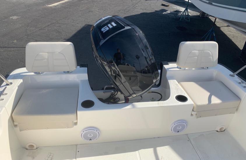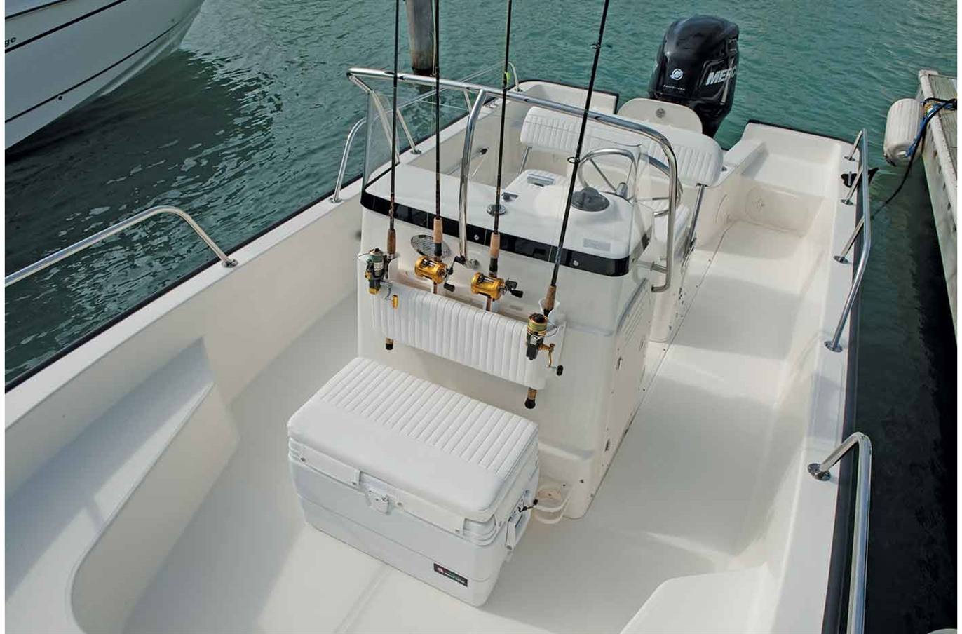 Le finiture a bordo di un Boston Whaler Montauk sono le stesse rinvenibili su un Outrage o un Conquest: su un piccolo Montauk gli assemblaggi e le sigillature di ogni singola componente divengono fondamentali poiché la barca si sviluppa interamente “in esterna”.