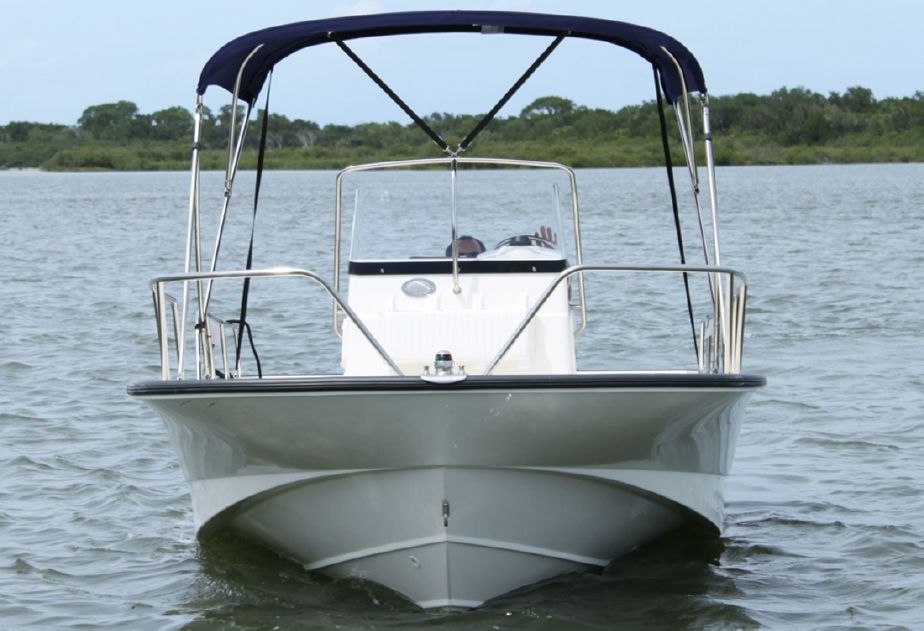 Il caratteristico profilo basso delle murate di un 190 Montauk (qui con plancetta poppiera optional)