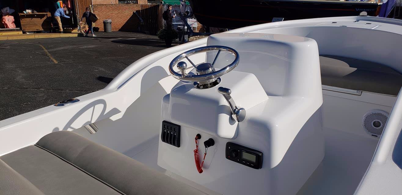 Qualità e pulizia: ecco quanto traspare osservando i dettagli del 12 Lil’ Buddy. Qui in versione con consolle standard. In alternativa è disponibile con helm pod in faux teak, con un effetto legno talmente realistico da sembrar vero.