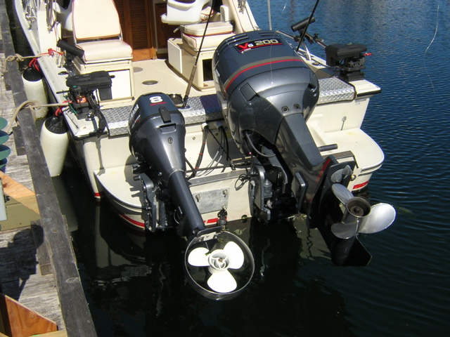 La deduzione è semplicissima: se si ha un piede poppiero o un fuoribordo come propulsione principale, non resterà che posizionare il motore ausiliario su un lato, cercando di riequilibrare i pesi statici a bordo come pacchi batterie, stivaggi vari, ecc… Ma se la nostra barca è dotata di trasmissione in linea d’asse, potremmo anche riuscire ad installarlo centralmente, od al più, leggermente sfiancato. Ovviamente, più il motore è centrale, più il movimento sarà vettoriale e si eviterà di muoversi con barca intraversata. Il più delle volte questo non è possibile, però, poiché una carena a V profondo ha un pescaggio tale per cui nemmeno con un gambo XXL si riuscirà ad uscire dallo spigolo di chiglia con l’elica dell’ausiliario.