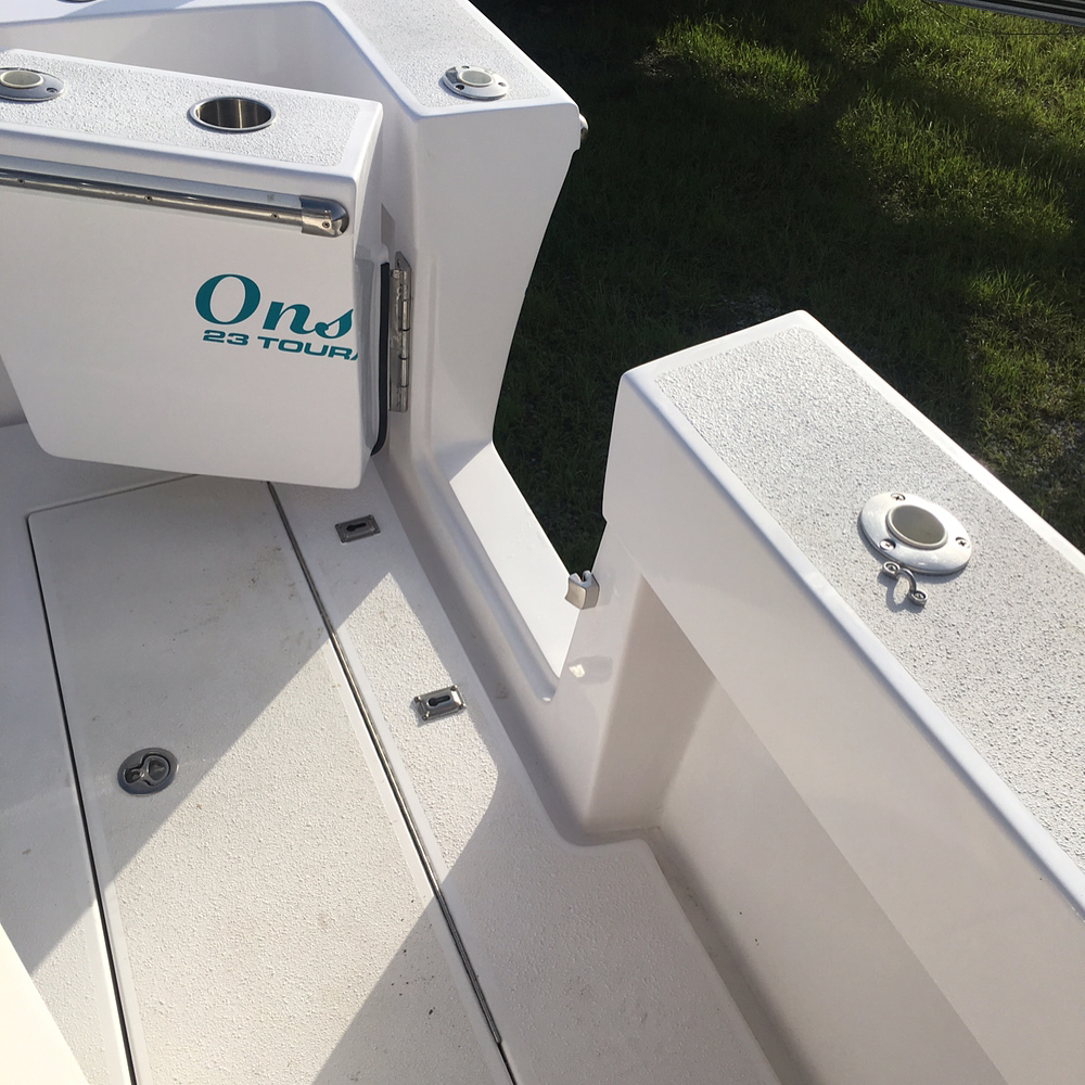 2️⃣ Side door: soluzione contemporanea, spesso fornita insieme alla tuna door, consiste in un’apertura ricavata in una delle murate laterali del pozzetto. Nasce in primis per agevolare le operazioni tipiche della subacquea (passaggio di attrezzature pesanti come le bombole) ma è una soluzione adottata anche da molti costruttori di grossi center console fuoribordo.