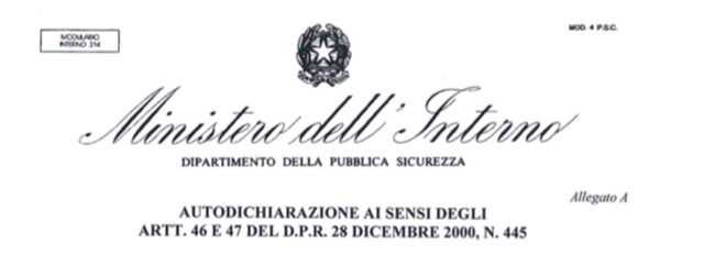 Ricordo che la dichiarazione mendace sul modulo di autodichiarazione (SCARICALO QUI) è punita con denuncia penale ai sensi dell’art. 650 C.P. o con l’ammenda di Euro 206,00. Ricordo, altresì, che pagare l’ammenda non esime dalla segnalazione di polizia ai sensi dell’art 335 c.p.p.