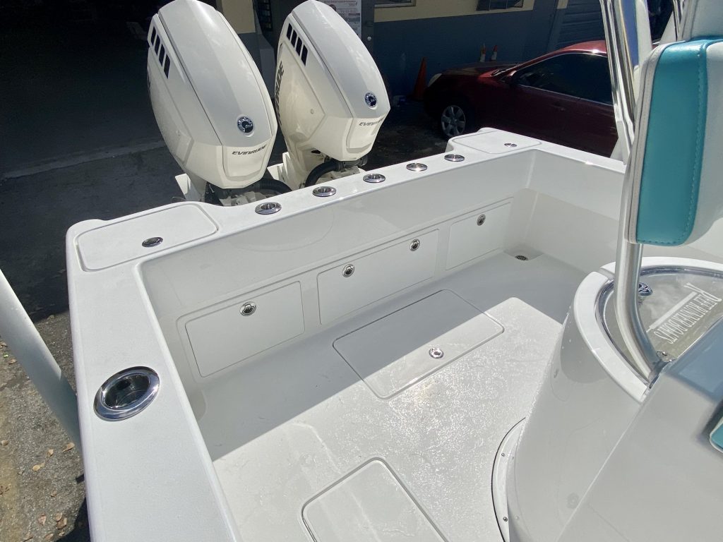 D’accordo, questo Reefrunner 230 Open non avrà la tuna door, ma dimostra chiaramente come uno specchio di poppa chiuso con due plancette in stampata possano coesistere anche in presenza di due motori da 150 hp, il tutto su uno scafo di 23 piedi!