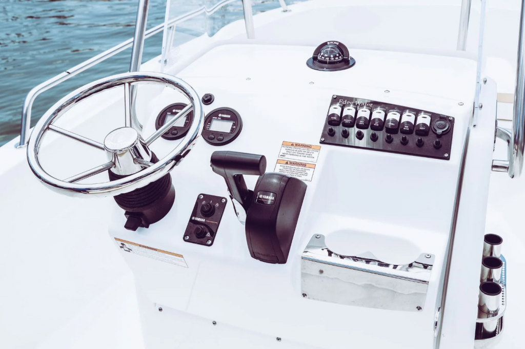 La costruzione è la solita di Edgewater: schiumatura integrale a cellula chiusa, con pelli in vetroresina ad alto spessore per scafo e coperta stratificate in infusione. La qualità, sul 170 CC, c’è ovunque, con qualche concessione alle rifiniture dove non batte il sole, eppure la solidità di questa barca ne garantisce la durata nel tempo e le consente di affrontare accidentali cambi repentini di condizioni meteo.