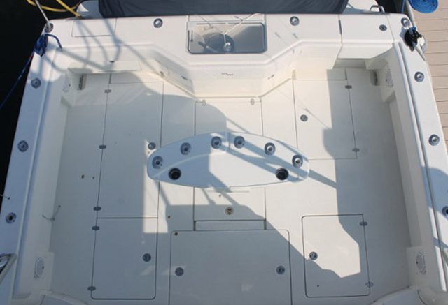 Un cantiere di lunga storia nella costruzione di fisherman come Pursuit, non solo ha equipaggiato un suo modello molto particolare di center console di svariati gavoni a due terzi di scafo ma, addirittura, ne incoraggiava il suo “appesantimento” fornendo come opzione una seduta gavonata disposta ad estrema prua.