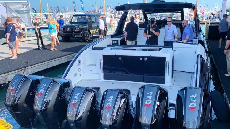 In foto il Cigarette Tirranna 59 AMG, una collaborazione tra il noto cantiere statunitense e la divisione sportiva di Mercedes-Benz, presentata all’appena concluso salone nautico di Miami.