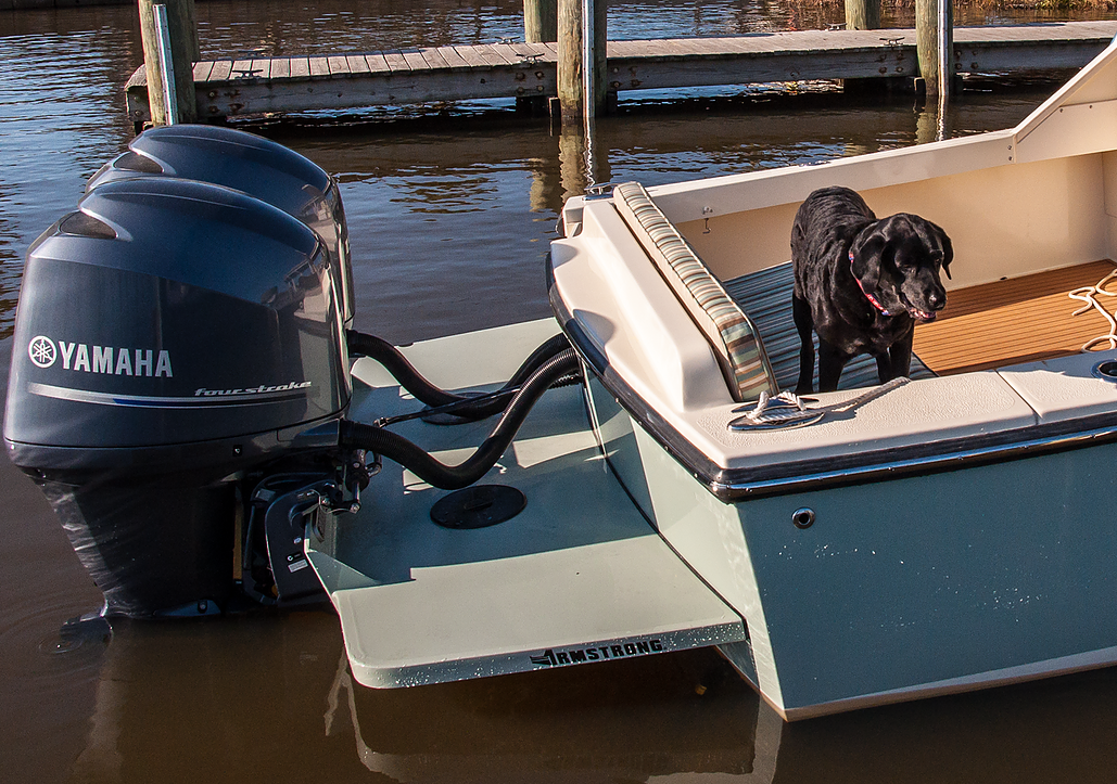 Un bracket Armstrong supporta un singolo motore da 300hp od una doppia motorizzazione da 150hp, sebbene il cantiere sia disponibile per strutturare la barca per motorizzazioni di potenza superiore. Questa è semplicemente la motorizzazione consigliata in rapporto alle prestazioni ed ai consumi rilevati.