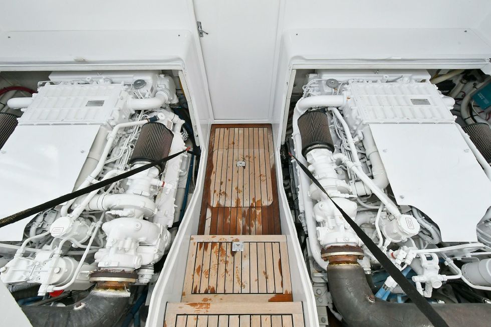Per chi intendeva utilizzare la barca in modo sistematico (si pensi ai charter di pesca) opera chi, per vezzo, volesse una barca il più possibile esente da rogne, il cantiere proponeva una coppia di MAN 2848LE 401 da 510hp cad, motori dalla durata stimata in 20.000 ore di esercizio, prima di interventi di manutenzione straordinaria. Con i motori meno potenti, la barca garantiva comunque prestazioni più che dignitose, rispetto al peso ed all’impronta di questo fisherman di lusso: 28 nodi di crociera e 34 nodi di massima.