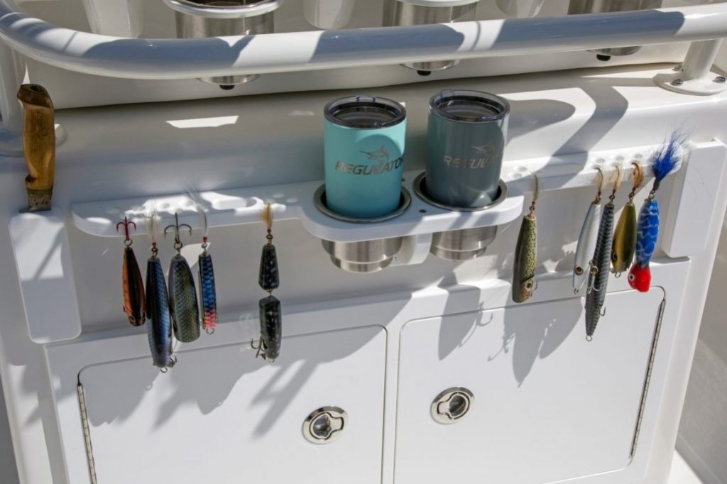 Se in pozzetto, infatti, non troviamo vani all’uopo progettati, dovremo pensare di ricavare noi stessi delle cassettiere a murata, magari sotto le falchette, dove collocare rastrelliere per appendervi gli artificiali da utilizzare durante la battuta di pesca, dei portacoltelli e portapinze facilmente raggiungibili estendendo il braccio, e magari persino raddoppiati (sia in murata destra che su quella sinistra).