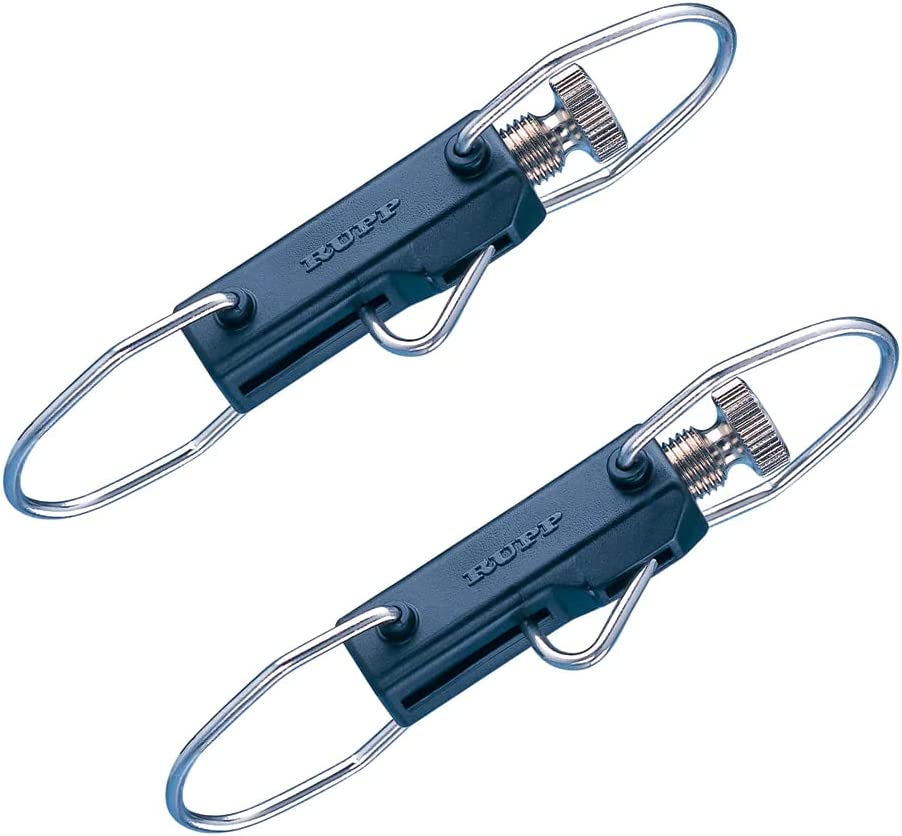 Occorre innanzitutto distinguere tra le clips a filo d’acciaio e quelle su cuscinetti. Della prima categoria menziono senz’altro le Rupp Klickers, dotate di frizione in testa, per regolare la forza di apertura del passante, ed occhielli per essere facilmente annodate in serie alla rigging line.