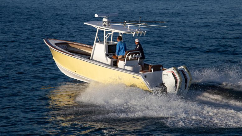 Stuart 27 CC è una barca snella, ben fatta, sobria, dalle specifiche di carena che ben si adatterebbero ad un uso mediterraneo, magari accoppiata a due fuoribordo di media potenza. Sì, perché questa barca è progettata per planare con un solo motore di 150HP… sì, avete capito bene: il cantiere sostiene che, sollevando il secondo motore, a questo scafo siano sufficienti 150HP per planare e tenere velocità dai 20 ai 28 nodi.