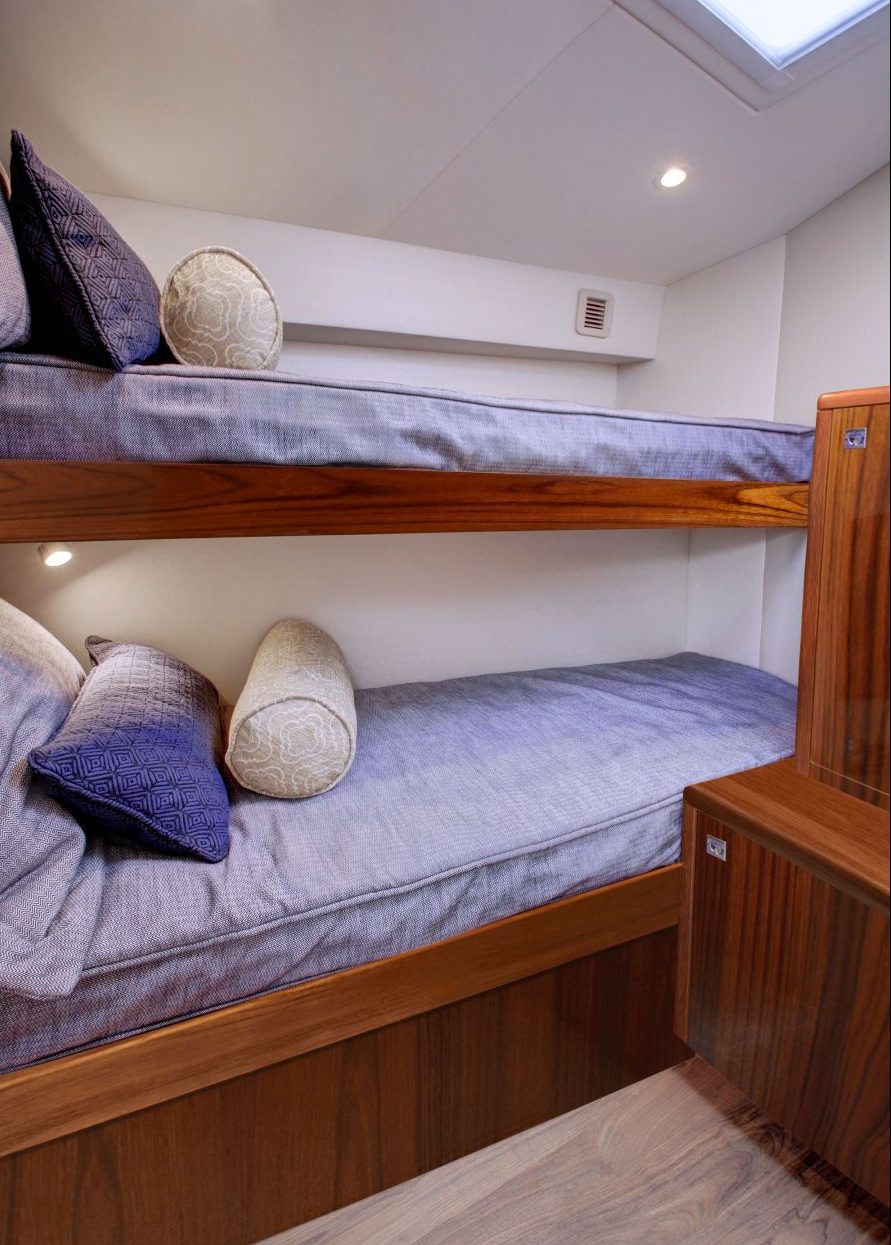 La scelta più “europea” sarebbe quella con due cabine separate, tuttavia la sensazione di spazio della soluzione con la sola cabina prodiera è, per alcuni, impagabile.
