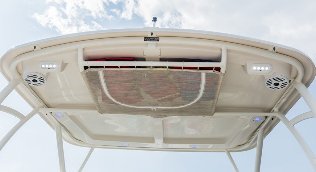 Questo fa il paio con il robusto hard top in VTR completo di chiusure perimetrali, frontale e posteriore, per rendere questa barca un fisherman “ognitempo” o quasi.