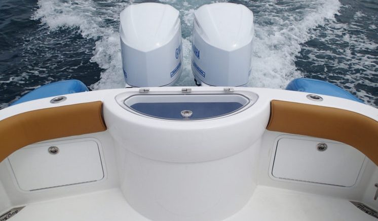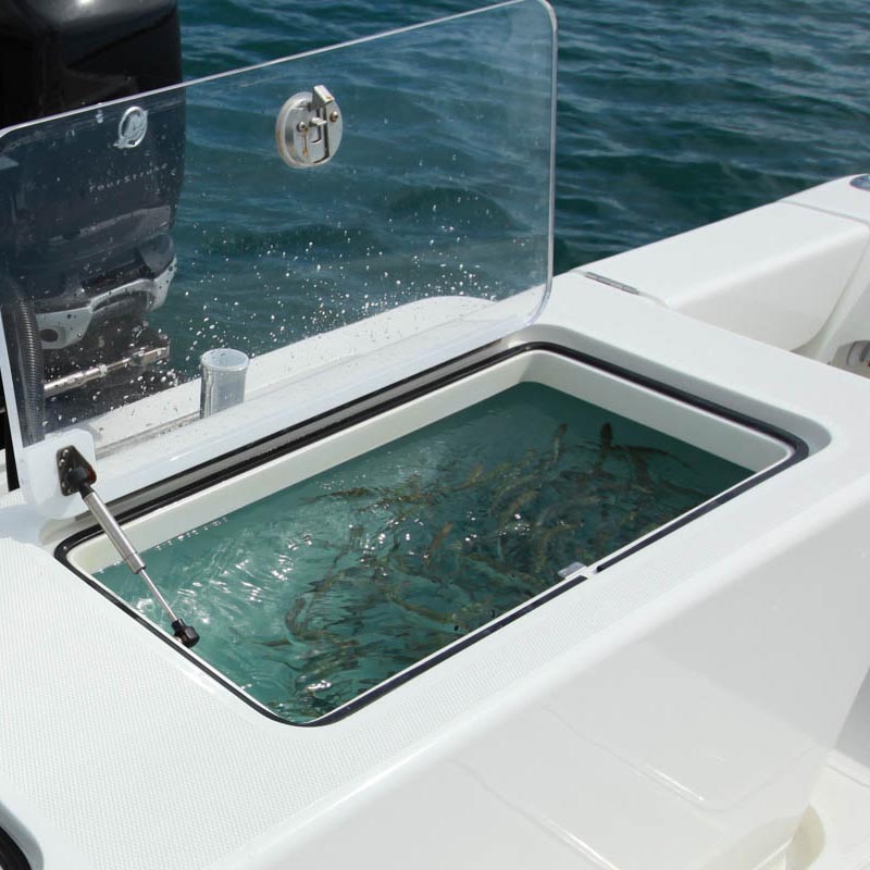 Su una barca motorizzata con grandi fuoribordo (soprattutto se su bracket) la posizione ideale per la vasca del vivo dovrebbe essere quella in foto.